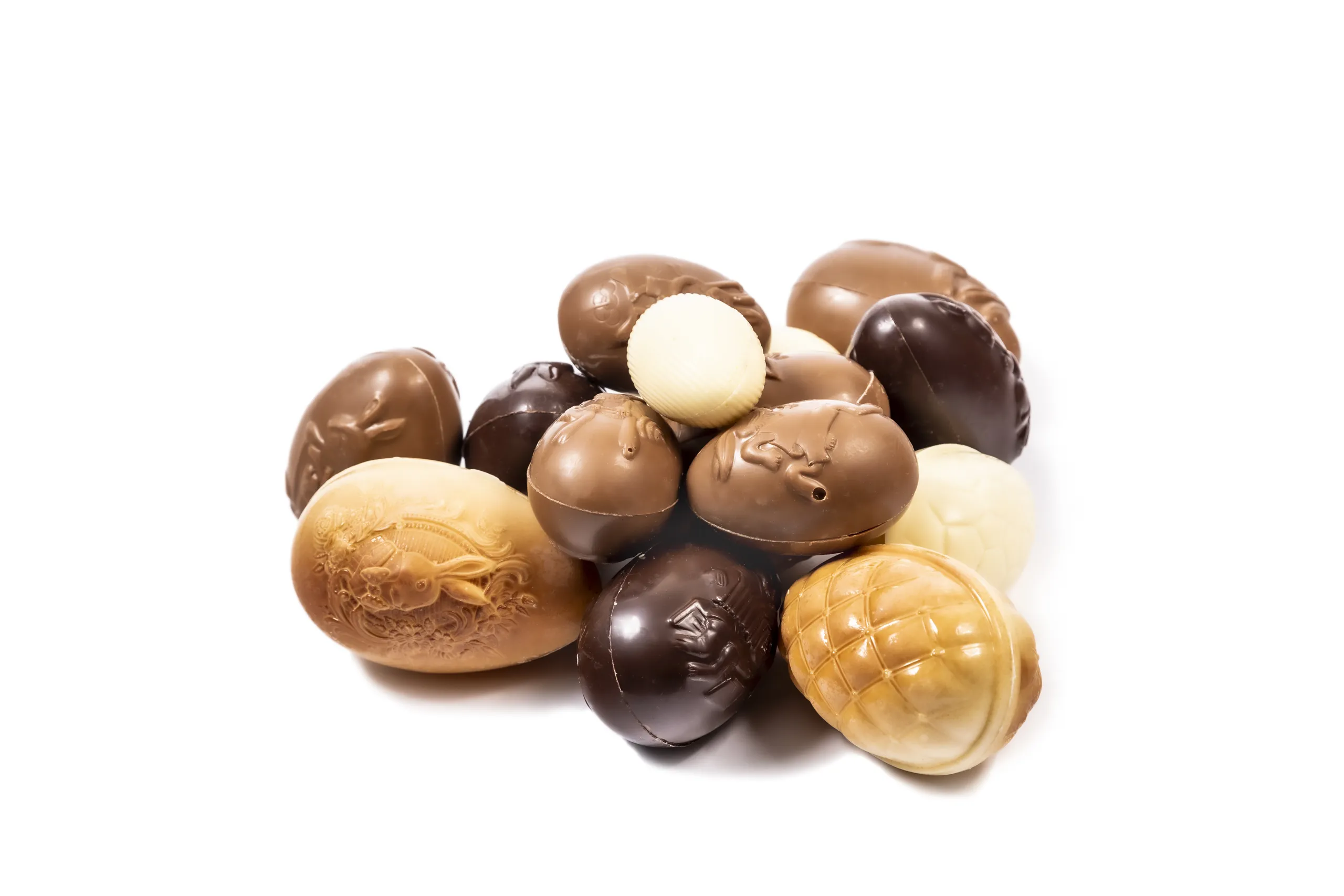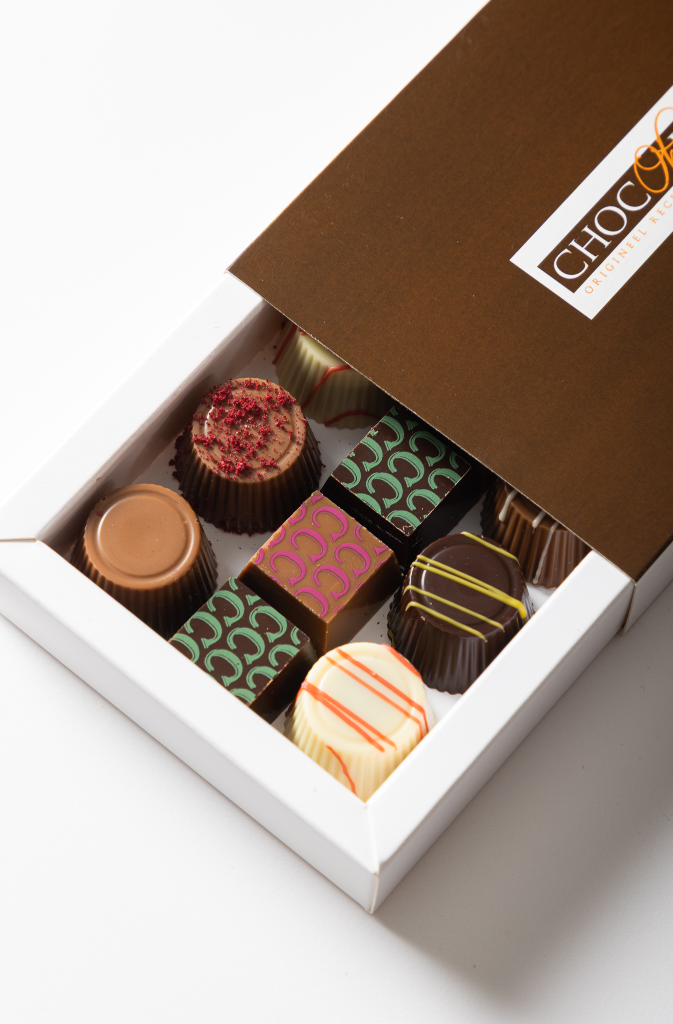 Luxe bedrijfspakket : ingekleurde Piet melkchocolade (h18 cm) 250 gr pralines en tablet chocolade naar keuze
